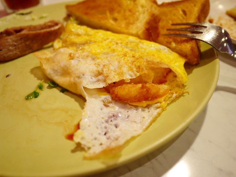 薯餅起司蛋由一層荷包蛋包覆起來,
