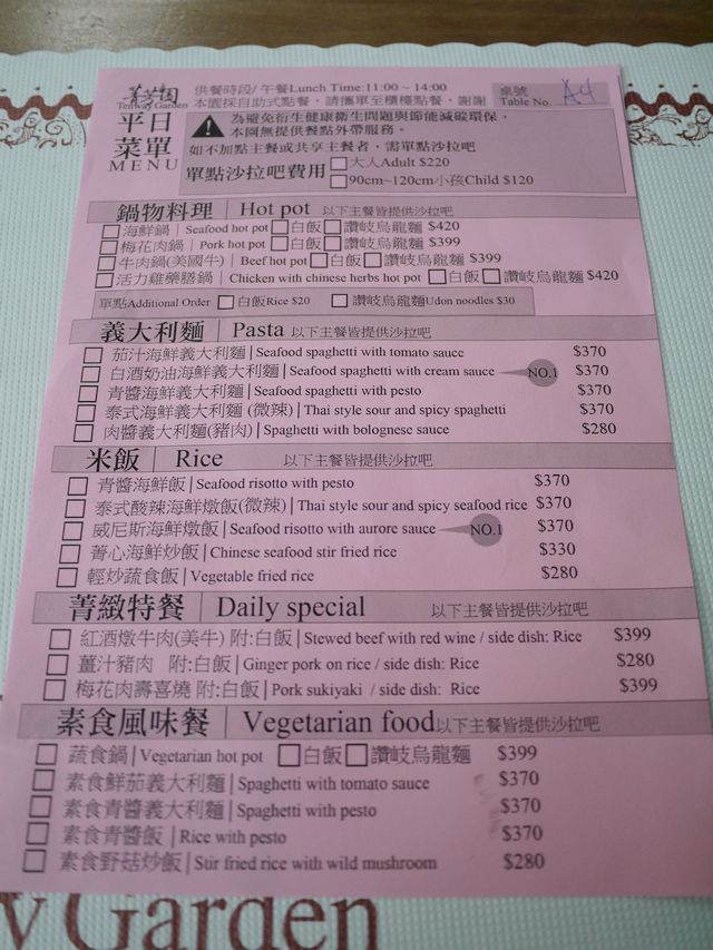 這是平日菜單,也可以單點沙拉吧,