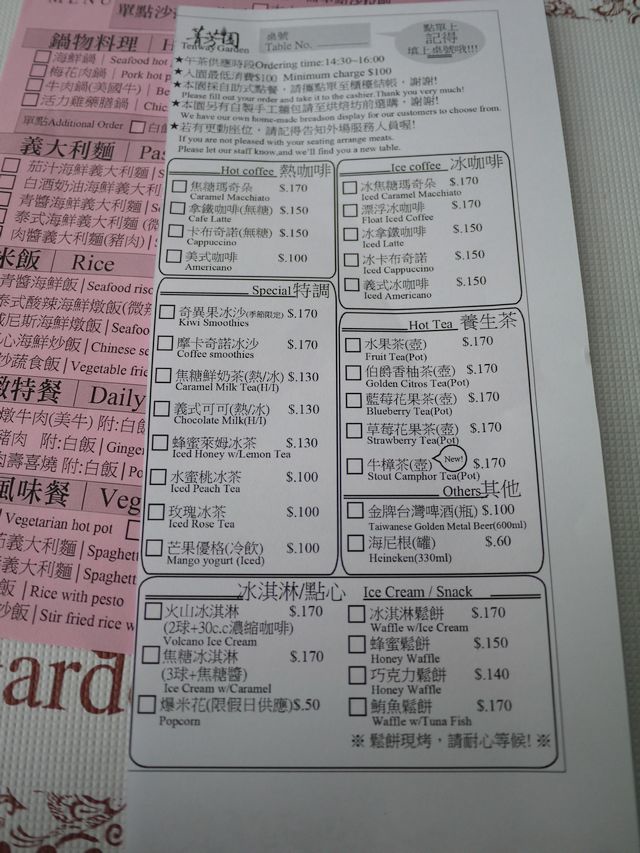 這邊是下午茶菜單。
