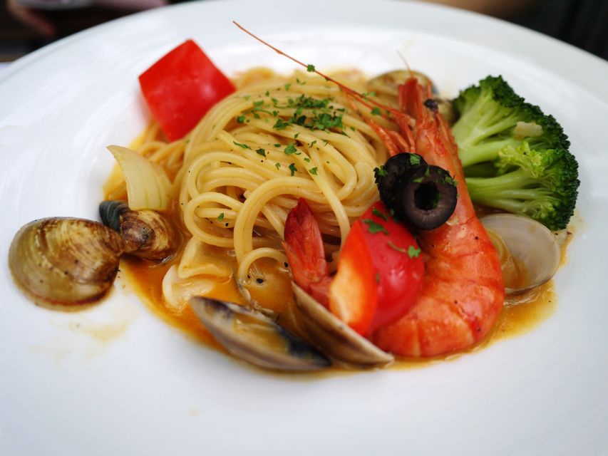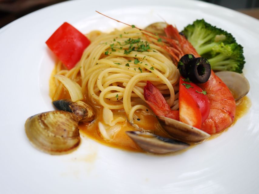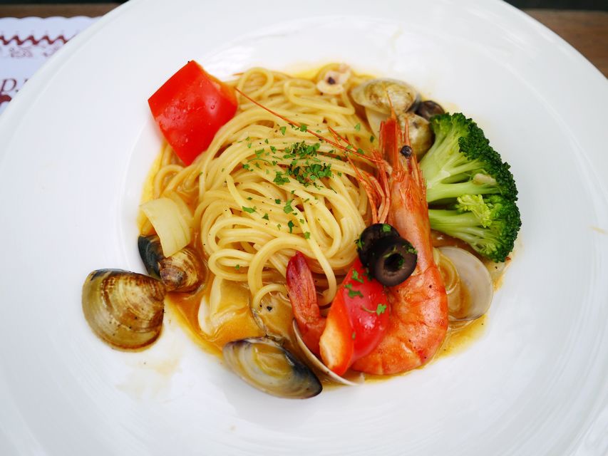 有蛤蠣、蝦子、番茄、洋蔥、花椰菜等,