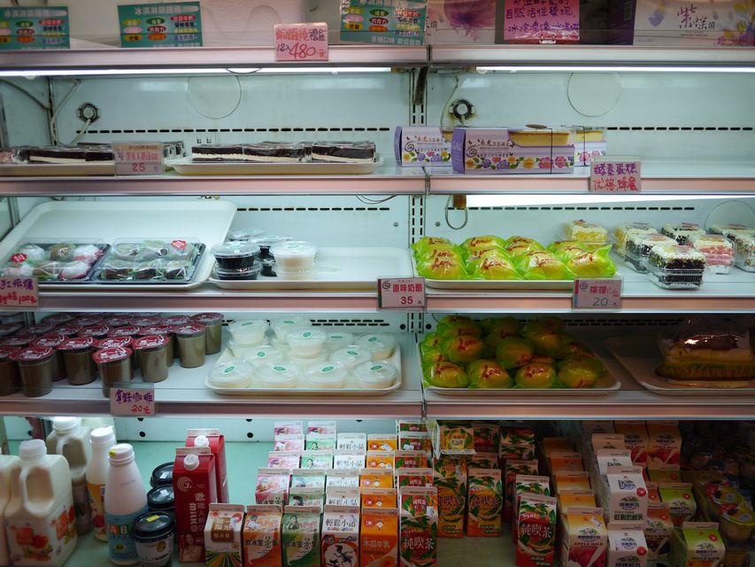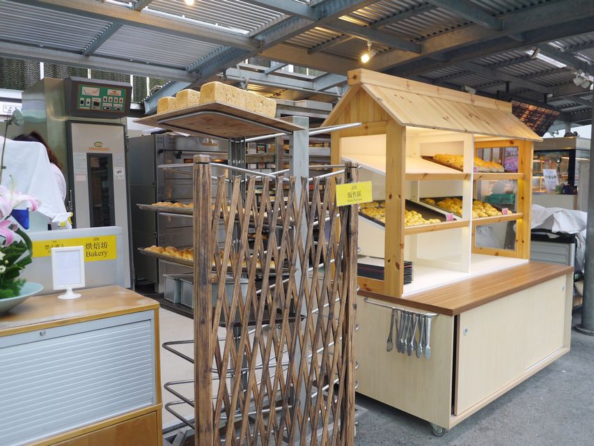 左邊是水果、甜點櫃,右邊是麵包販賣區。