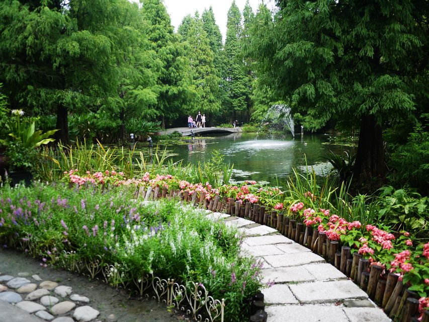 不過夏天,主打的落羽松沒有黃橙橘紅色的繽紛,有的是蔥翠的綠,