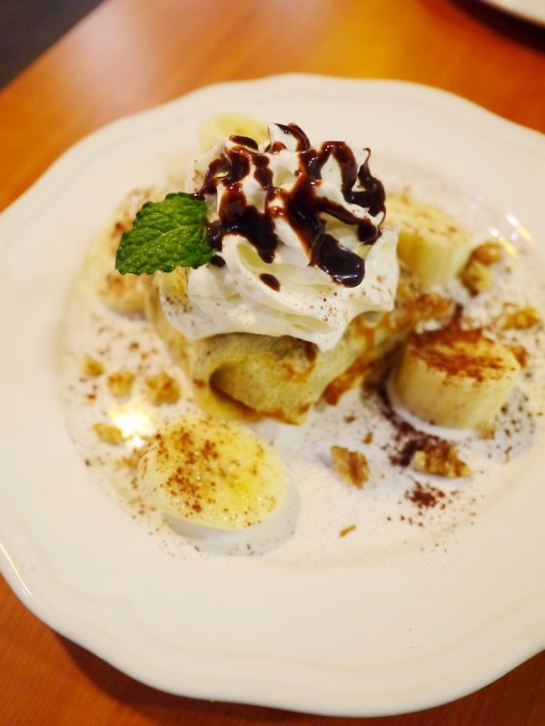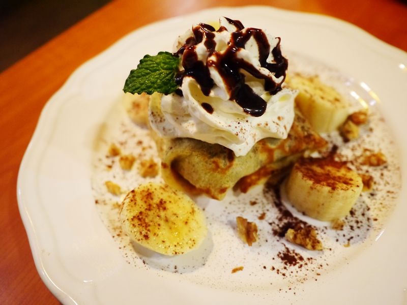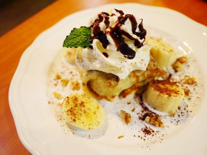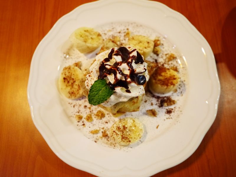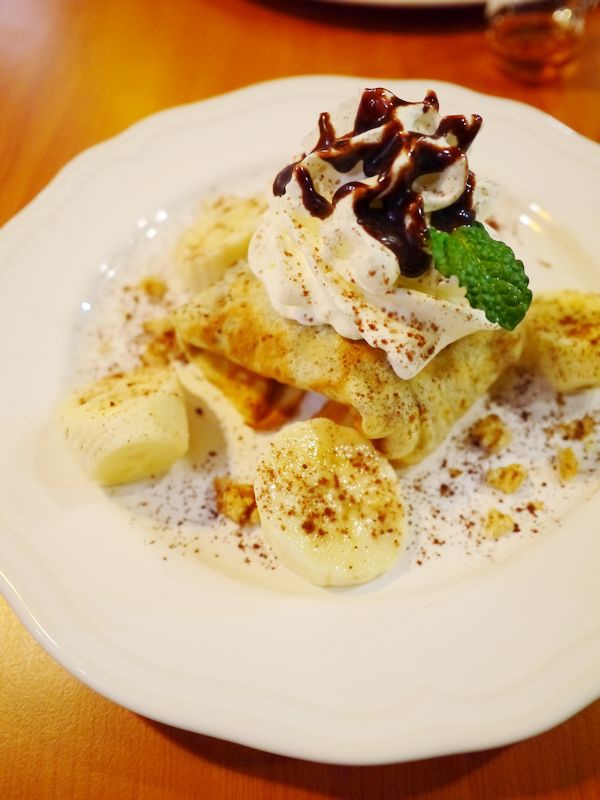 鬆餅上面還鋪上了香蕉切片與黑豆,很用心耶XD