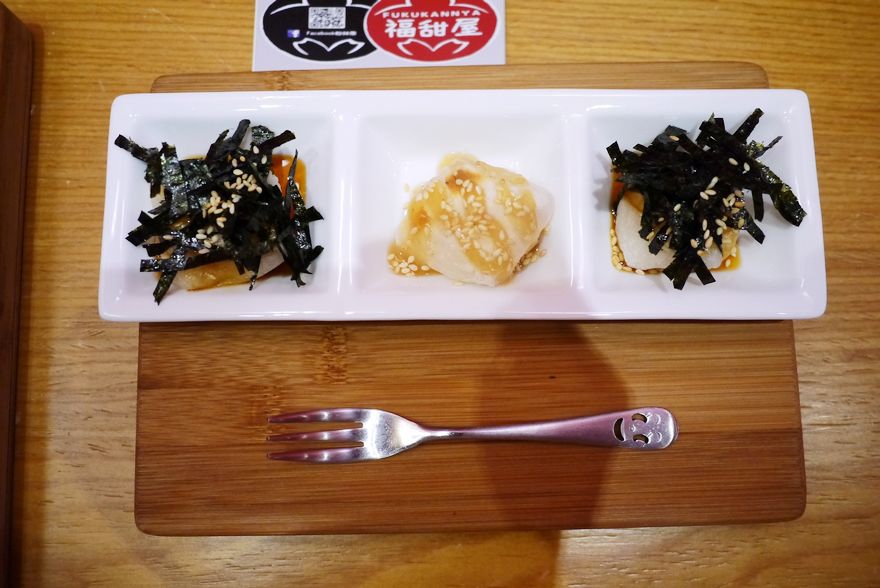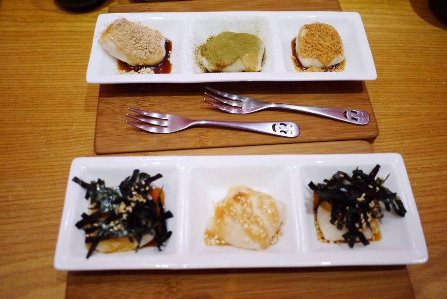 上面一排是甜口味,有黑糖黃豆粉、黑糖抹茶粉、黑糖花生粉,