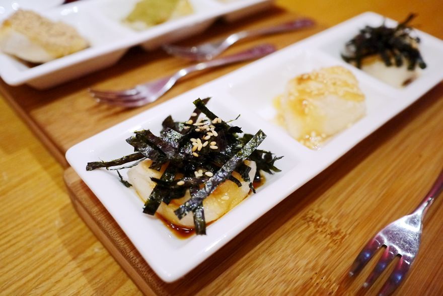 其實烤麻糬我都習慣吃甜口味,有點難想像鹹口味的麻糬,