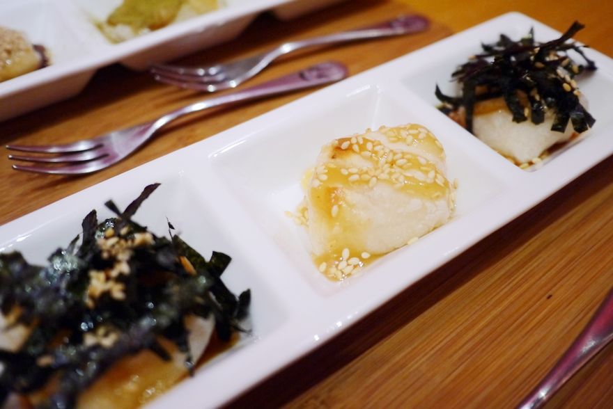 麻糬好Q,不管搭什麼醬料都好適合喔,都會越嚼越香,而且很有飽足感XD