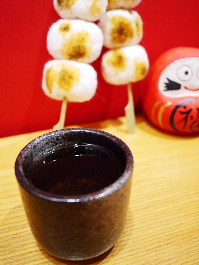 若是外面在放張木頭長板凳,坐在木板凳上吃一串烤麻糬,再來杯抹茶,更能滿足我對日本巷弄甜點的美好幻想。