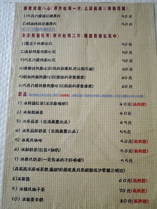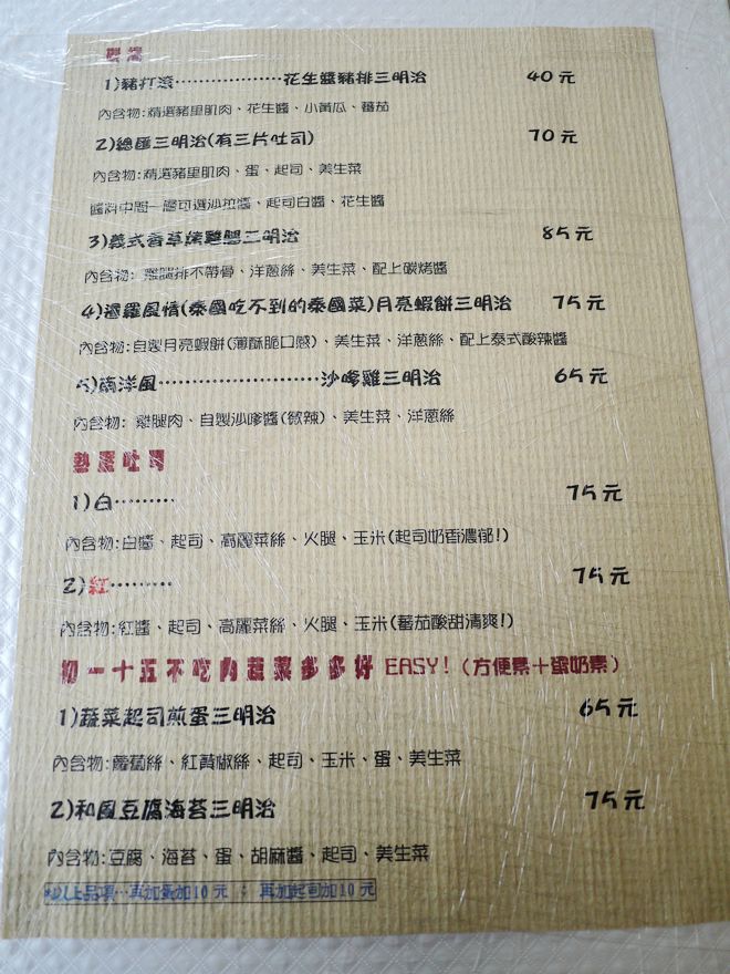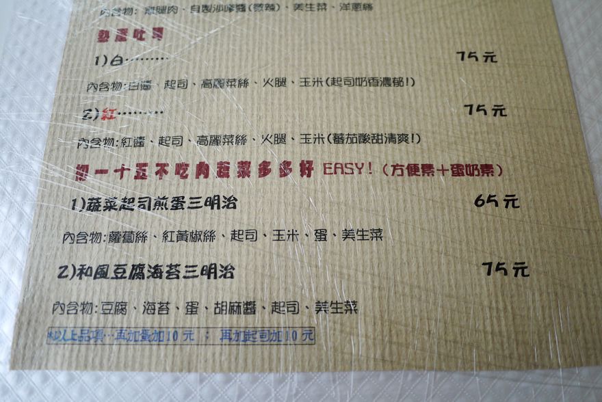 另外還有熱壓吐司(分為紅、白醬)、蔬菜三明治等。