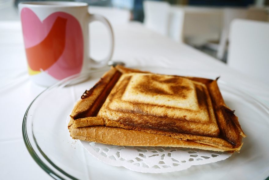 吐司烤得酥脆,我喜歡這種吐司邊近乎餅乾的口感,很香。