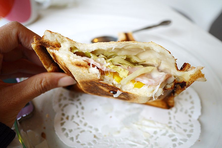 熱壓吐司口味偏清淡,加入蔬菜和玉米口味較清爽,