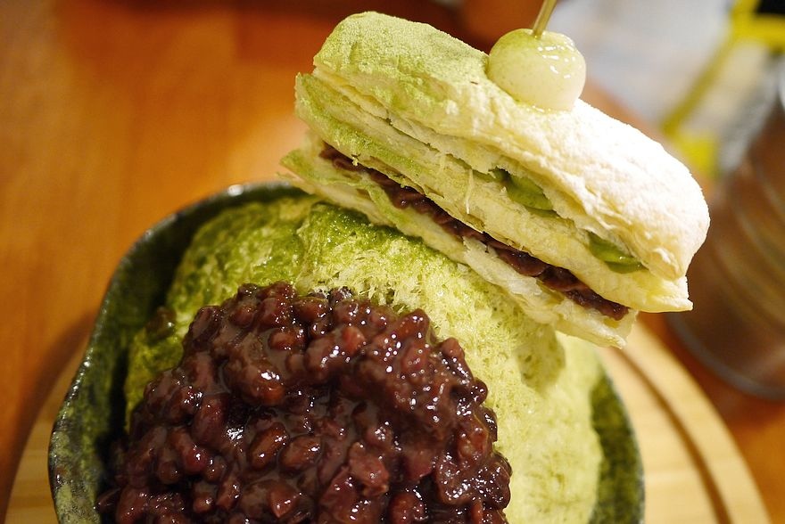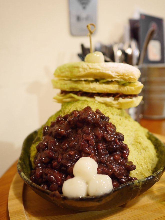 抹茶雪花冰稠稠的,少了點抹茶的清香,很容易膩。